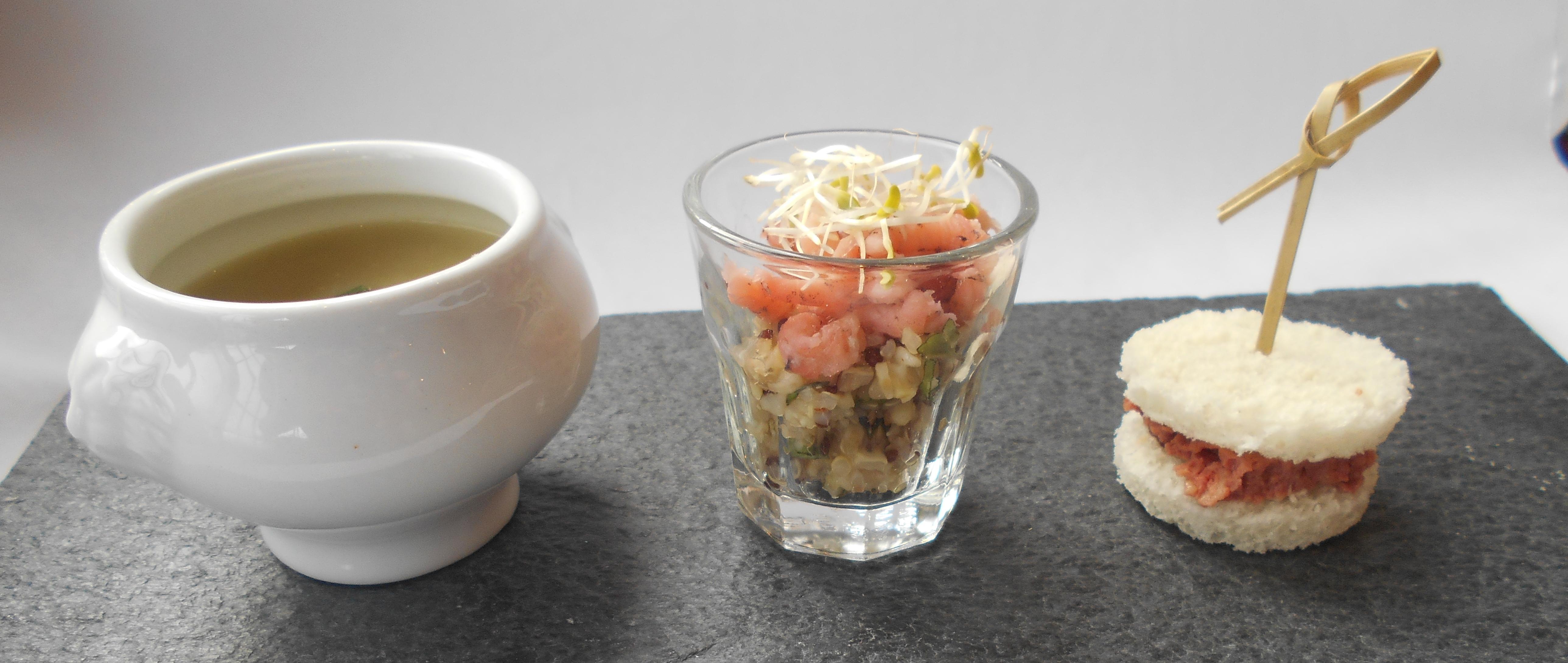 - Mini garnaalsoepje, vissoepje, erwtensoepje, …