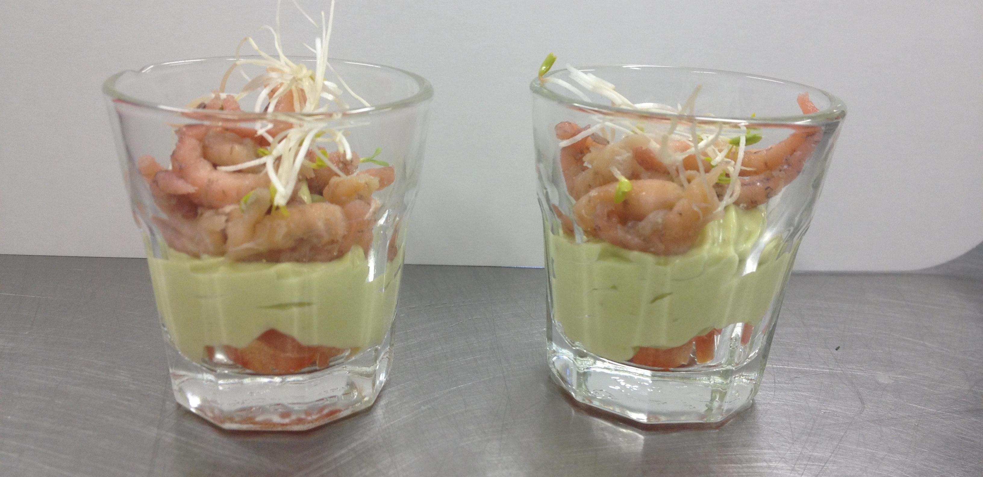 - Avocadopuree met tomaat, feta en garnaaltjes