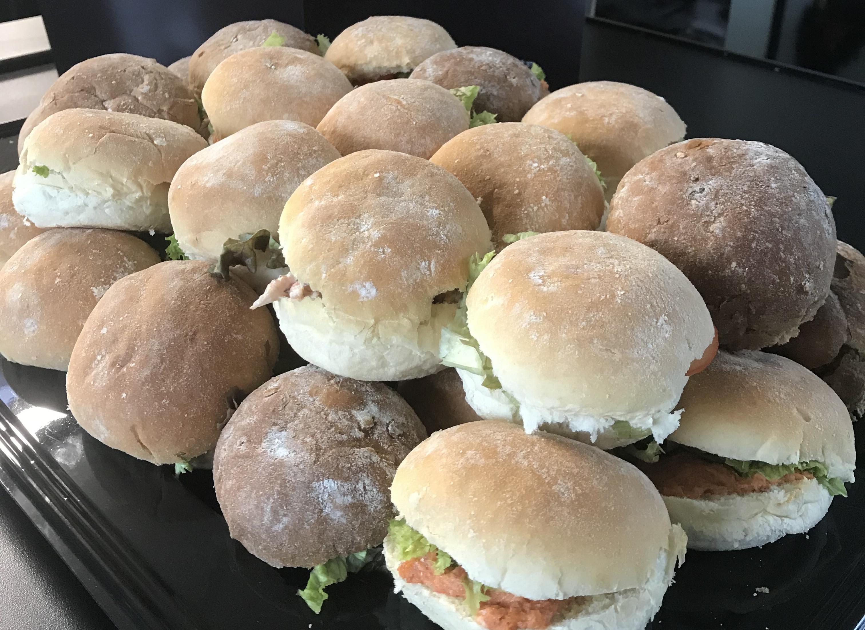 - Belegd met garnaalsalade, krabsalade, gerookte zalm, paté van de chef, kaas, ham, preparé…
