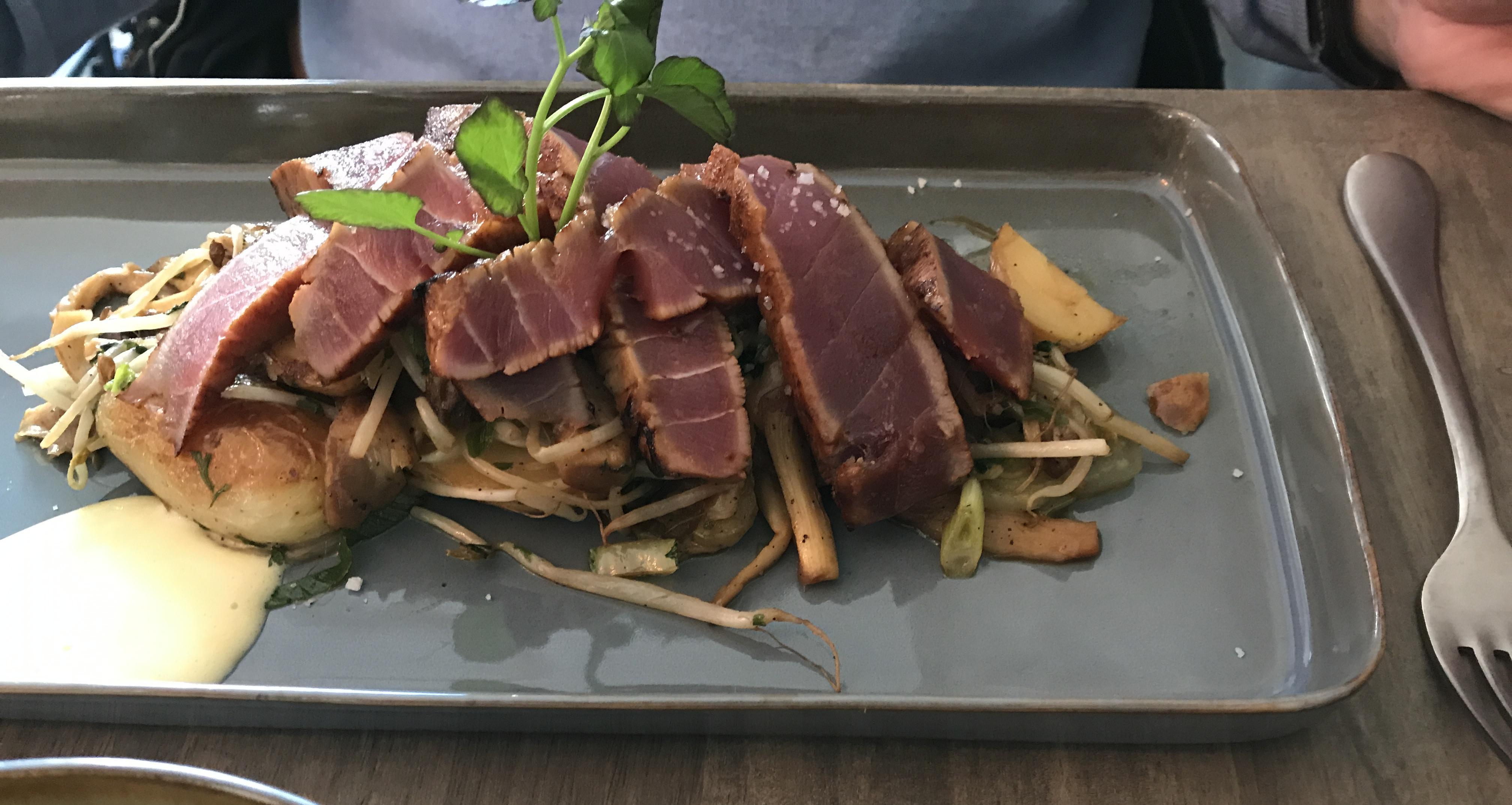 Keuze saus: béarnaise, peper- of champignonsaus. Salade mix.